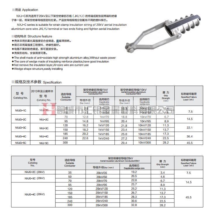 NXJ-C楔型絕緣耐張線夾(鋁絞線架空絕緣電纜JKLY